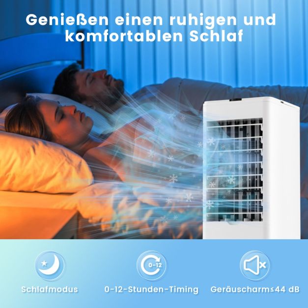 - Tiho delovanje & stroškovno učinkovita izbira: Tihi način spanja in 0-12-urni časovnik vam omogočata miren in udoben spanec vso noč. Zato je ta 60 W izhlapevalec zraka s kompaktno in energetsko varčno zasnovo popolna rešitev za hlajenje majhnih prostorov.