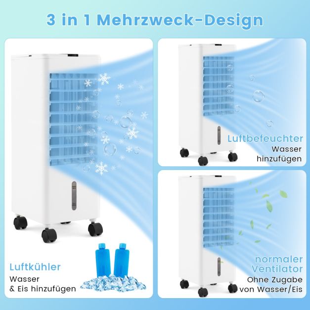 - Zasnova 3 v 1 in individualni pretok zraka: Ta klimatska naprava ima več funkcij: hladilnik zraka (dodaj vodo in led), vlažilec (dodaj vodo), običajni ventilator (brez vode/ledu). Na voljo so tudi 3 načini delovanja (Normal, Natural, Sleep) in 3 hitrosti ventilatorja (visoka, srednja, nizka), ki ustrezajo vašim različnim potrebam.