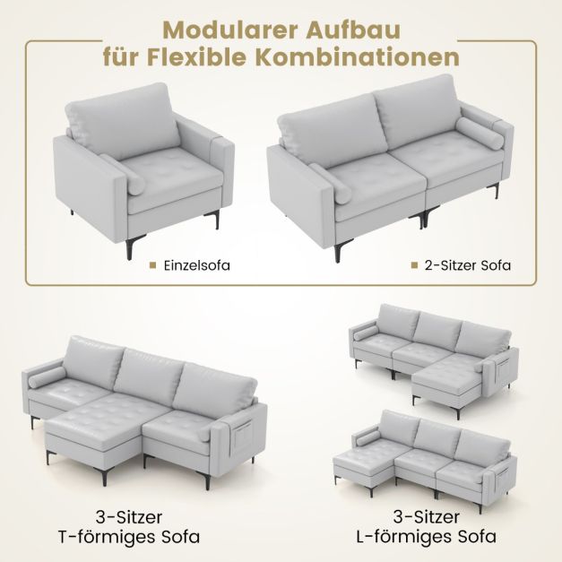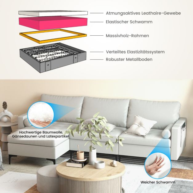 Naš oblazinjen kavč je prevlečen s sivo usnjeno tkanino in podložen z visokokakovostno gobo, ki zagotavlja vrhunsko udobje. Sistem porazdeljene elastičnosti ohranja vzmet močno in vzdržljivo. Vsebuje tudi mehko hrbtno blazino, debelo sedežno blazino in stranski valj. Poleg tega stranski žep zagotavlja dodaten prostor za shranjevanje. Kavč zdrži do 300 kg, kar dobro prenese težo otrok in odraslih. Njegov trden okvir, kovinske noge in nedrseče podloge za noge zagotavljajo vzdržljivost in trdnost. Z našo sedežno garnituro lahko udobno in varno gledate televizijo, berete knjige, se učite ali delate.