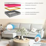 - Trdna in stabilna konstrukcija: Trden okvir zagotavlja močno nosilnost, ki lahko prenese težo do 300 kg. Tako je naša sedežna garnitura dovolj trpežna in čvrsta, da vam bo služila dolgo časa. Trdne kovinske noge zagotavljajo, da stoji stabilno na tleh in se ne sesede ali maja. Dodatne nedrseče blazinice za noge preprečujejo praske na tleh.